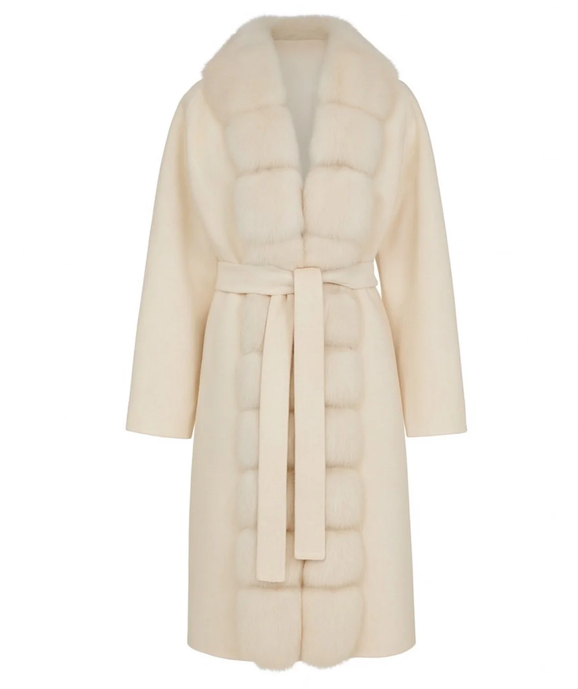 The Chiara Collection embodies a balance between strength and softness. Crafted from double-faced wool and finished with plush fox fur trim, the Kiara Jacket defines the waist with a self-tie belt, creating a silhouette that is both sculpted and fluid. Offered in wine red, cream, and midnight blue, each variation reflects a distinct expression of modern luxury.